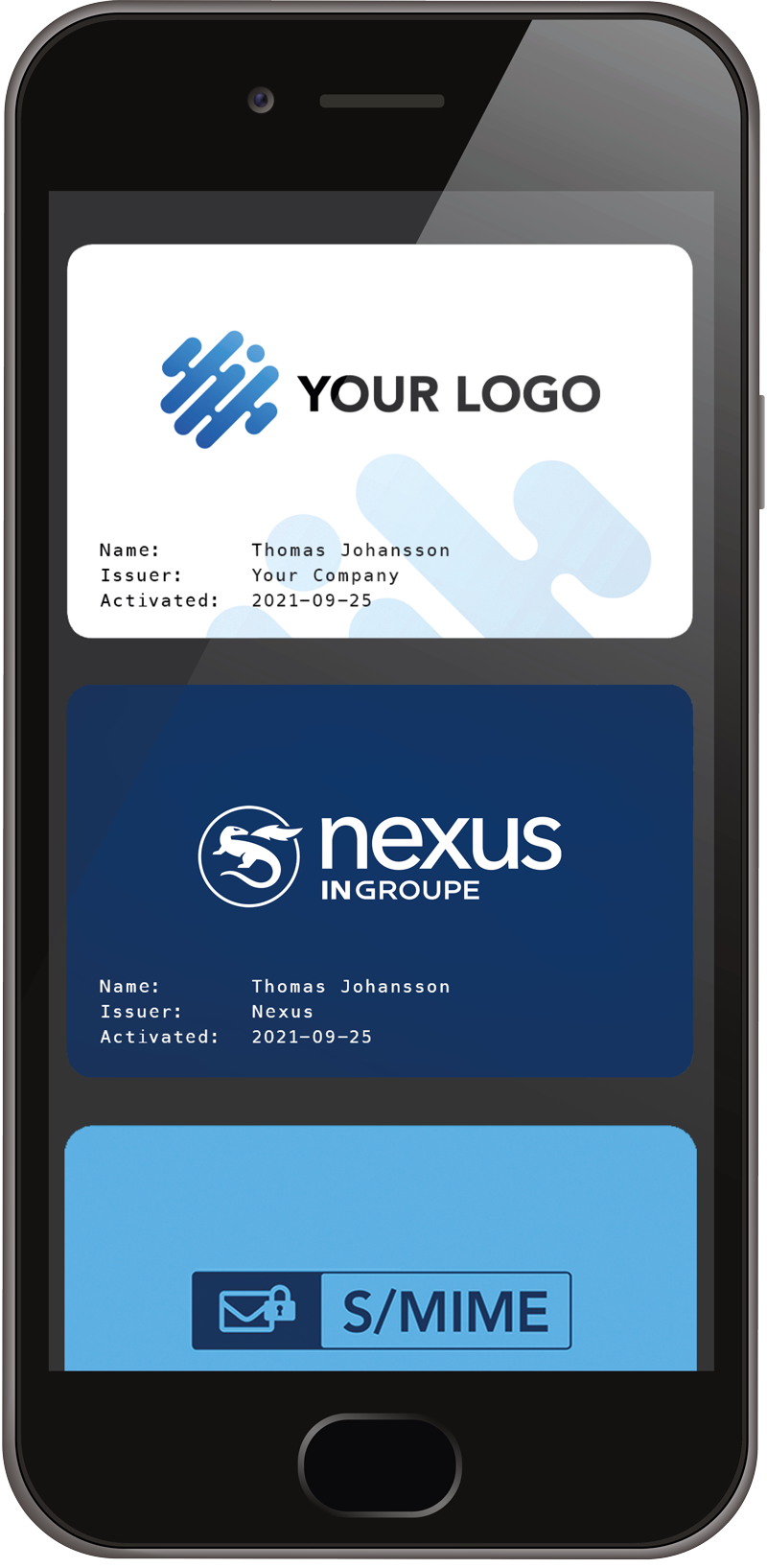 Mobile virtual smart cards are trusted digital identities hosted in a secure mobile app. They are used for out-of-band authentication to digital resources (such as Microsoft 365 or other apps), digital signing, email encryption and visual identification.