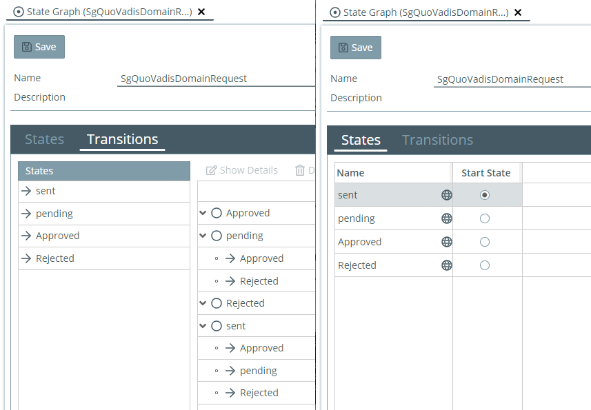 The state-graph must contain at least the following states: pending/approved/rejected (case-insensitive), with transitions from pending to both approved and rejected.