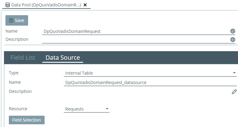 The datapool must have the fields with the described names as shown in this figure. This field names are fixed and taken from DomainInfo response.