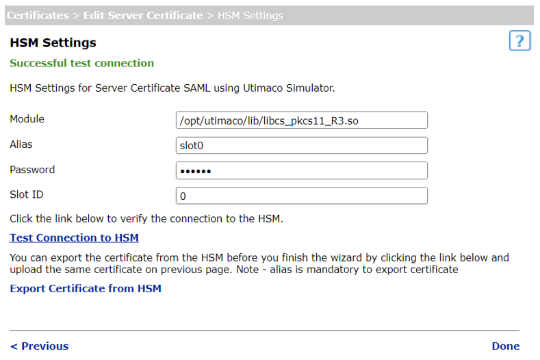If “Test Connection to HSM” check in Digital Access Admin UI fails, look for the error message in the admin system log.