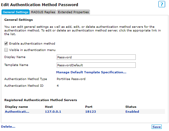 An Authentication Method of type Password must be set up, so that Identity Manager can authenticate against Digital Access XPI.
