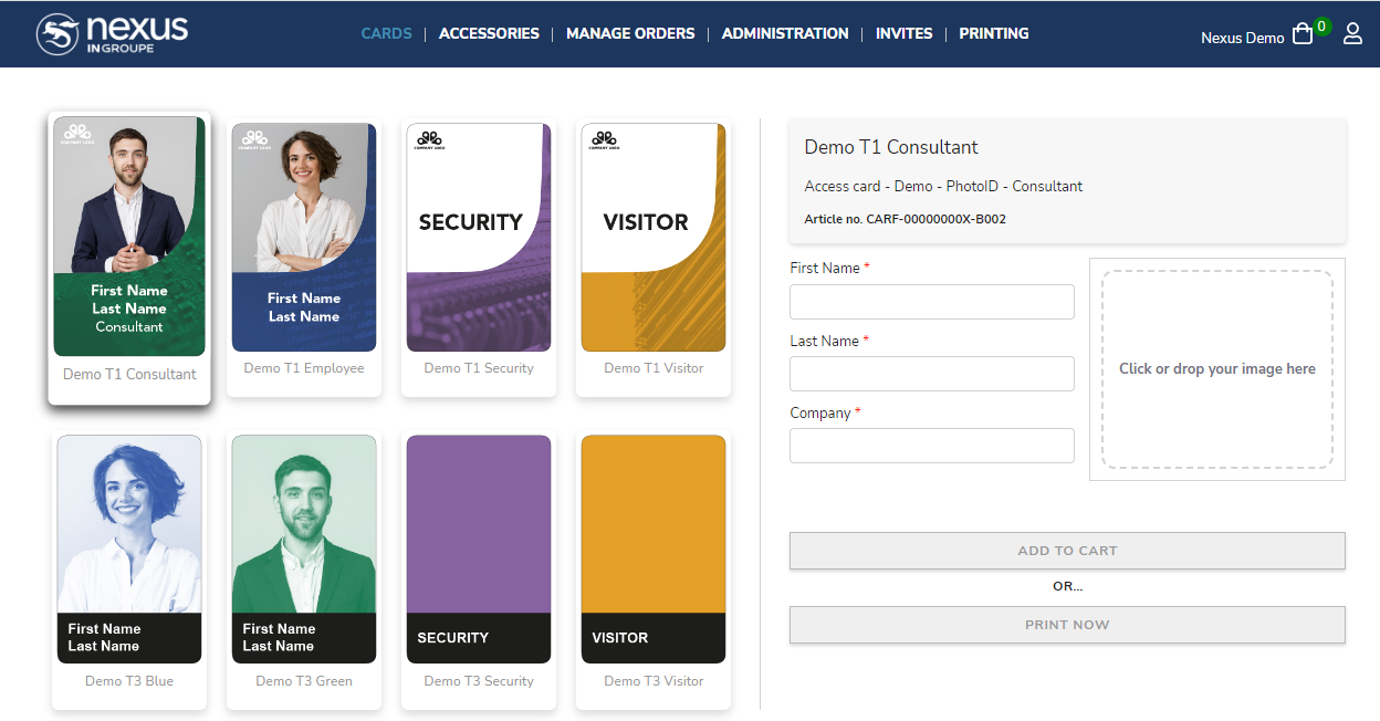 Through the Nexus GO Cards service, you order your customized access cards, photo ID cards, and key fobs in the Nexus GO Cards management portal. Cards and key fobs are delivered correctly coded and in line with the security levels which apply in your organization.