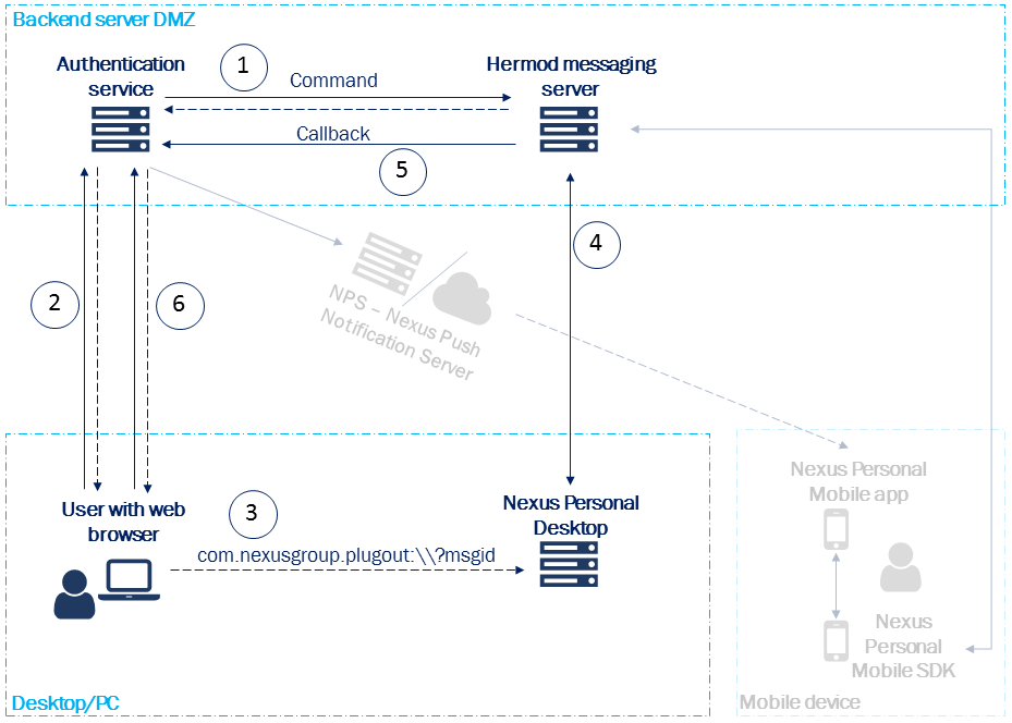 Personal Plugout allows for integrated web browser signing/authentication and works with all browsers. Personal Desktop registers a protocol handler that is invoked from the web page and then the signing transaction is finalized via the Personal Plugout user interface. The Hermod messaging server exposes an easy to use REST API to perform these operations and manage the server to client communication. For more information, see Hermod.