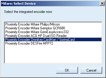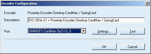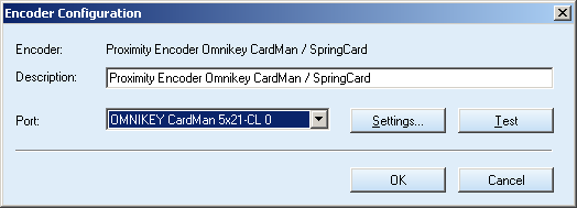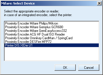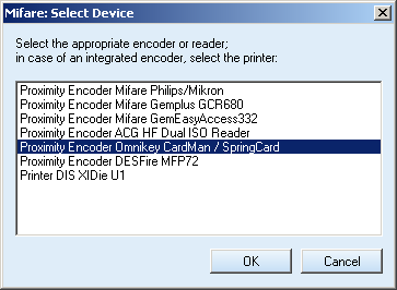 For all RFID and contact chip encoding applications (chip, legic, mifare, ...) you may specify the name of an encoding device as configured in the Configuration Manager: