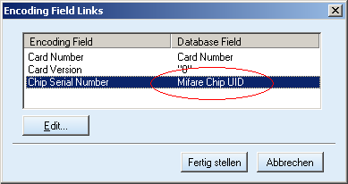 When configuring the encoding description with EncodingConfigurator (in Non managed mode) or CardDesigner (in Managed mode), you will map the Encoding Field that returns the chip UID (Mifare Chip UID) field of the field list. The left dialog below shows such an assignment. When editing the layout in the CardDesigner we again select this field. You may use the CardDesigner's field formatting options, to get this field being printed formatted (for example, padded with leading zeros):