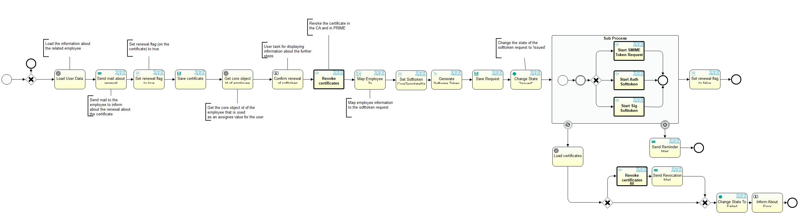 | 1 | Identity Manager | On a configurable interval, Identity Manager runs the Expiry check, which finds all software token certificates that will expire within the coming period. For each affected user, the steps below are done. | Automatically requests to renew all software tokens that belong to active users. |