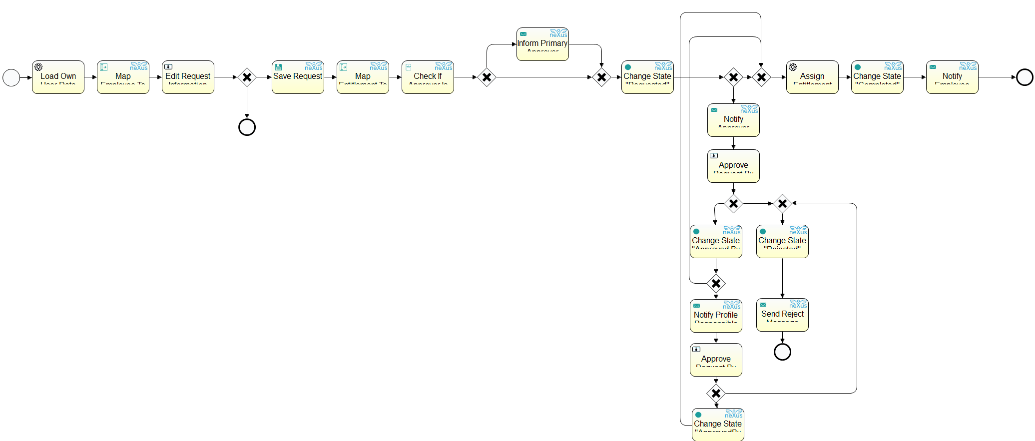 | 8 | Identity Manager | This step is only included for 2-step approval. Changes the state of the request to ApprovedByEntitlementResponsible. | Without approval or 1-step approval: This step is omitted. |