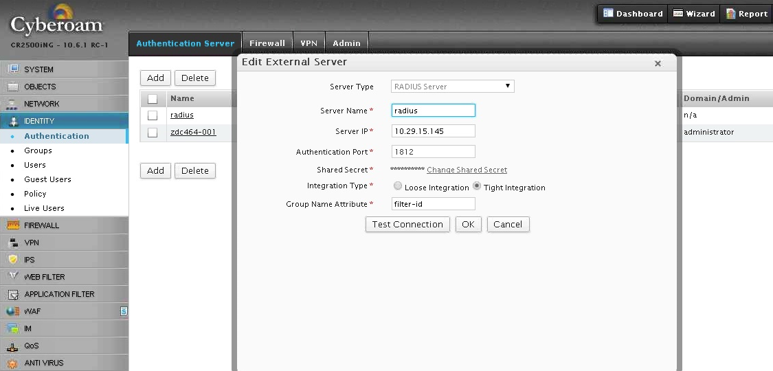 With the setup described in this article, Digital Access functions as a RADIUS server and Cyberoam as a RADIUS client. Nexus TruID is used as an example below and is available for iOS, Android, and Windows.