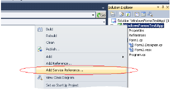 In this service integration the SDK's SOAP interface is called from a simple Windows Forms Application named WindowsFormsTestApp. In our example, we use the approach to integrate the web service as .NET Web Reference and not as Service Reference. According to our experience, this style is easier to handle. But you can also chose to integrate the web service as Service Reference.